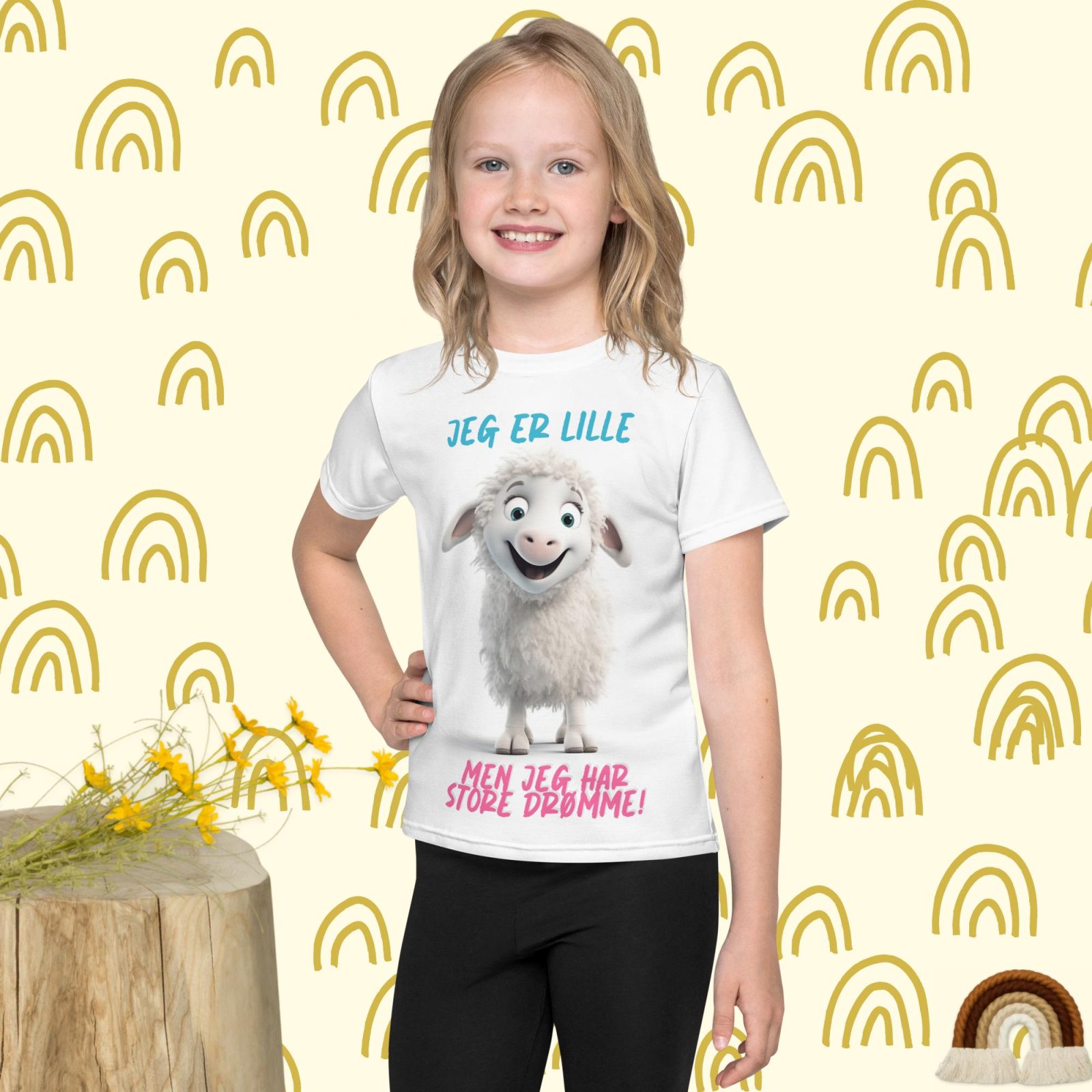 Denne T-shirt er perfekt til de små, som har store drømme. Med en nuttet lille får på forsiden og titlen “Jeg er lille, men jeg har store drømme” vil dit barn føle sig både sød og selvsikker. T-shirten er lavet af blødt og åndbart materiale, som sikrer en behagelig pasform hele dagen. Den er velegnet til leg og sjov, og kan både styles med shorts eller jeans. Lad dit barn vise deres drømme frem med denne skønne T-shirt.